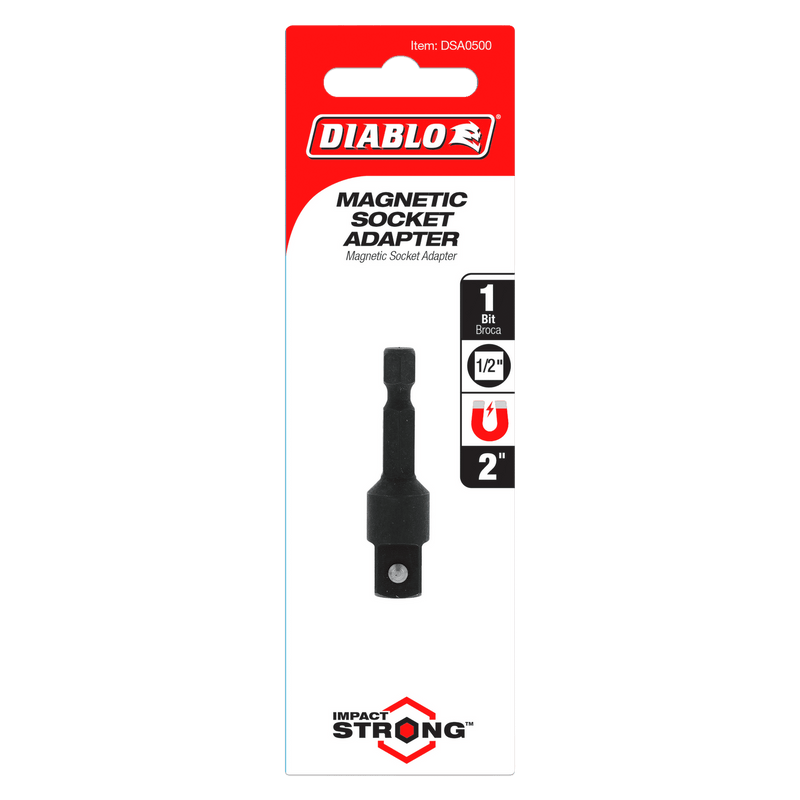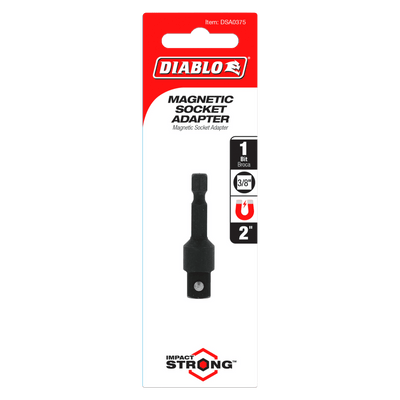 Diablo's socket adapters deliver ultimate performance and maximum durability in converting impact and standard drill drivers into socket wrenches. An ultra-strength pin prevents slippage by securely griping sockets when tightening and removing nuts and bolts. These hi-performance adapters are compatible with standard and deep well sockets and allows users to convert impact and drill drivers into square socket wrenches. Torque Resistant Design absorbs torque for less stress on the adapter and the socket. This range is Impact Strong, delivering increased shank stability and durability in cordless and corded impact and drill drivers.