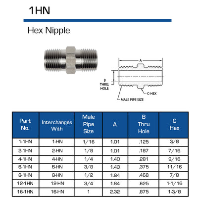 Tylok SS-6-1HN - Stainless 3/8" MNPT x 3/8" MNPT Straight Pipe Fitting