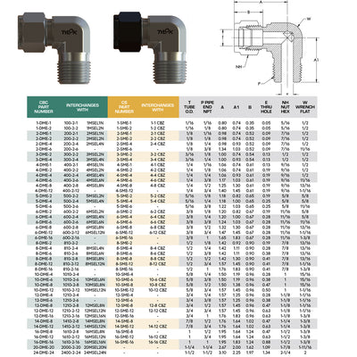 Tylok SS-8-DME-4 - Stainless 1/2" CBC Tube x 1/4" MNPT Elbow