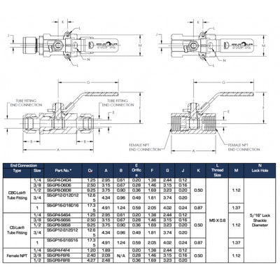 Tylok SS-GP6-D6D6 - Stainless GP Ball Valve 3/8" CBC Tube x 3/8" CBC Tube