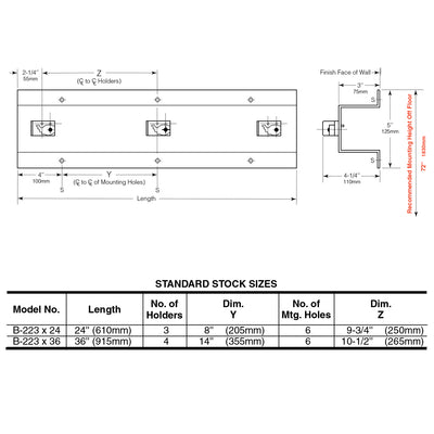 - Mop and Broom Holders — Spring-loaded rubber cam holders with anti-slip coating. Powder coated steel retainers.
