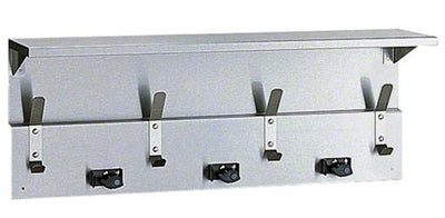 34″ L x 13″ H, three anti-slip mop holders, four hooks, satin-finish stainless steel
