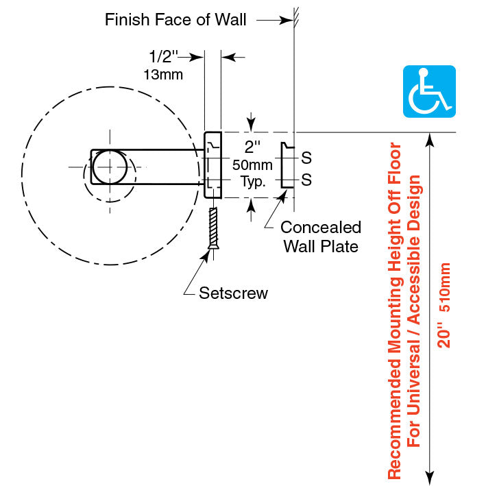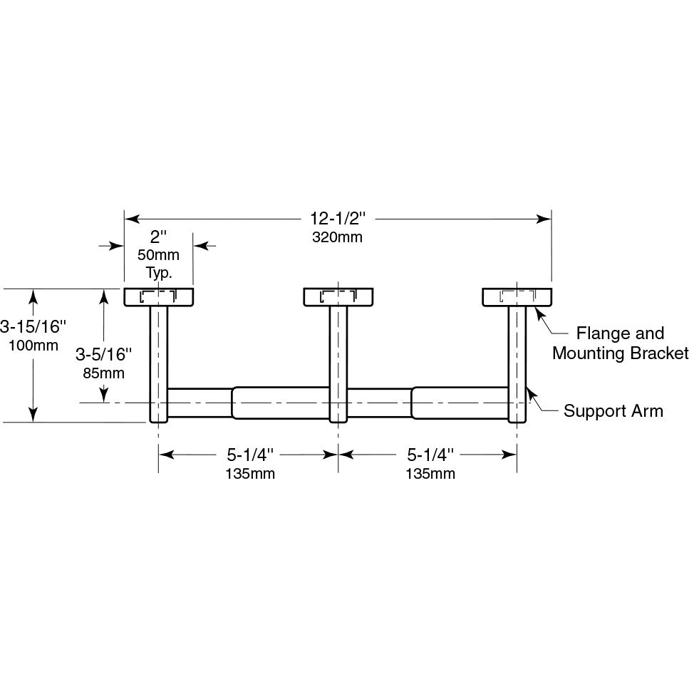 - Unit 12 1/2″ W, 2″ H (320 x 50mm); projects 3 15/16″ (100mm) from wall.