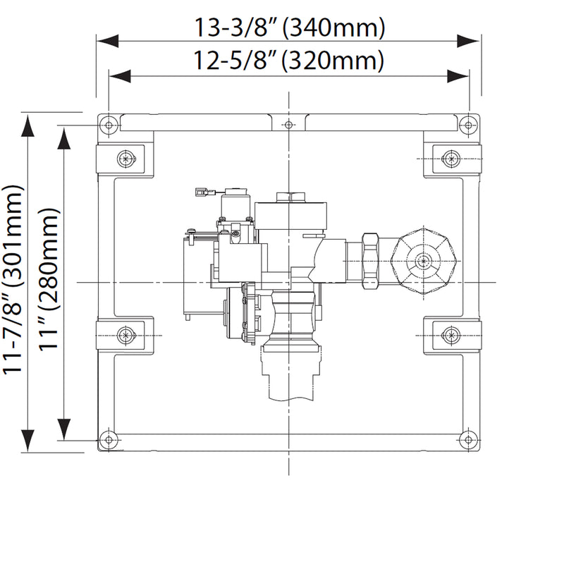 - Heavy duty 14" x 12" stainless steel cover plate withsatin finish and solid bronze valve body