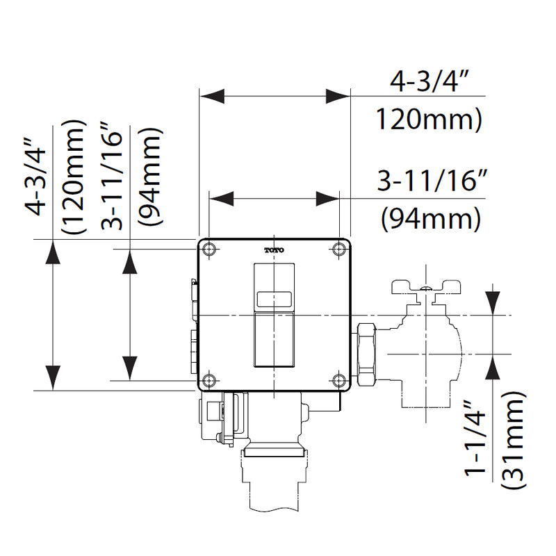 Toto TET3GB31#SS - EcoPower Concealed Toilet Flush Valve - 1.6 GPF - Back Spud Wall