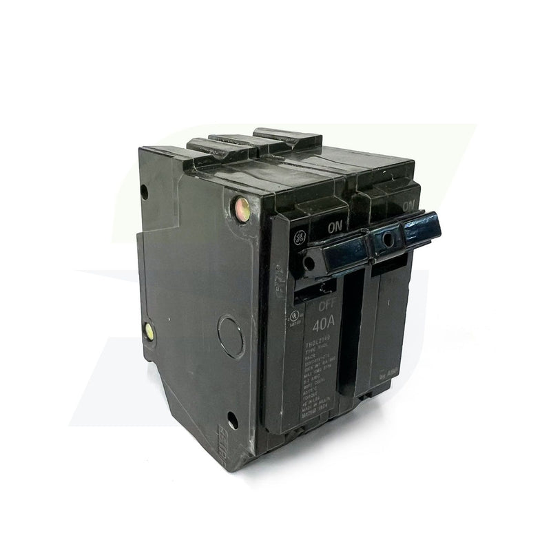 The ABB THQL2140 is a 2-pole, 40 amp plug-in circuit breaker from the Q-Line series, originally designed by GE. It's engineered for use in GE PowerMark load centers and ABB ReliaHome panels, providing reliable thermal-magnetic protection for 120/240V AC systems. This breaker features a 1-inch per pole design, allowing for efficient space utilization in electrical panels. It includes a quick-make/quick-break mechanism and a common trip bar for simultaneous disconnection in the event of an overload or short circuit.