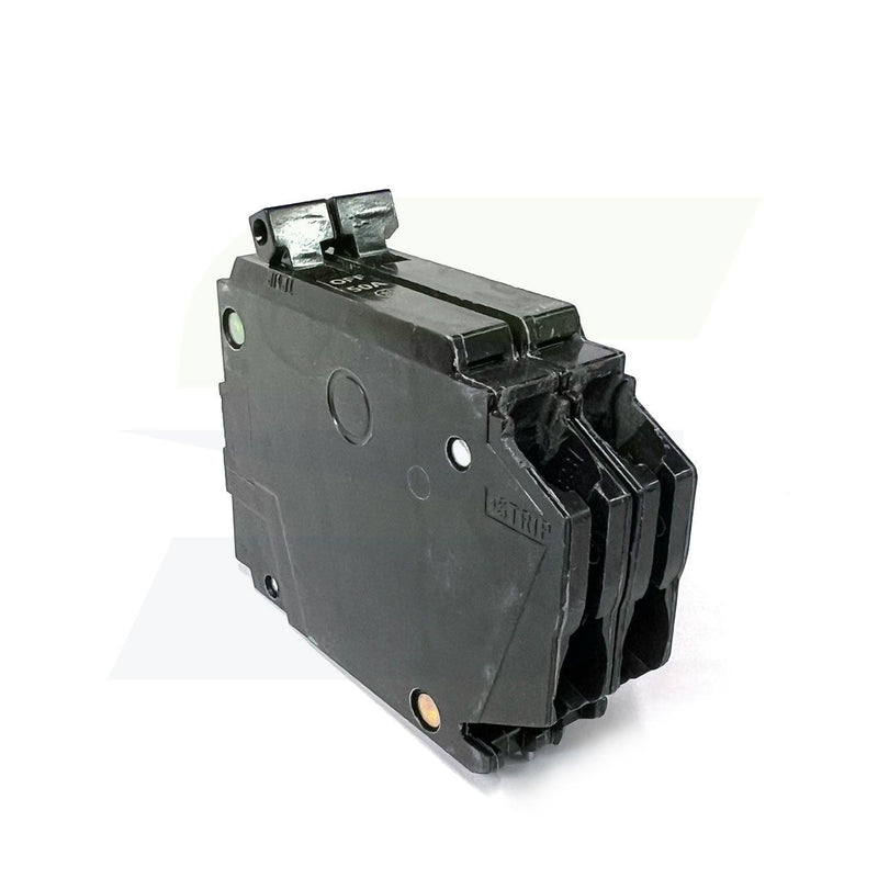 The ABB THQP250 is a 2-pole, 50 amp plug-in circuit breaker from the GE Q-Line series, designed for use in PowerMark load centers and other compatible GE panels. This half-inch frame breaker is ideal for high-density applications where space is limited, while still delivering reliable thermal-magnetic protection for 120/240V systems.