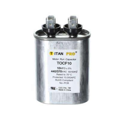 TITAN PRO TOCF10 PROFESSIONAL GRADE MOTOR RUN CAPACITOR 10 MFD 440/370 VOLT OVAL