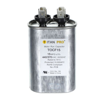 TITAN PRO TOCF15 PROFESSIONAL GRADE MOTOR RUN CAPACITOR 15 MFD 440/370 VOLT OVAL