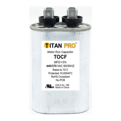 TITAN PRO TOCF25 PROFESSIONAL GRADE MOTOR RUN CAPACITOR 25 MFD 440/370 VOLT OVAL