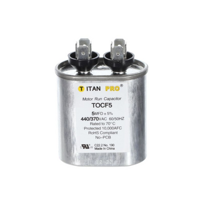 TITAN PRO TOCF5 PROFESSIONAL GRADE MOTOR RUN CAPACITOR 5 MFD 440/370 VOLT OVAL