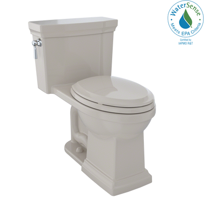 The TOTO Promenade II One-Piece Elongated 1.28 GPF Universal Height Toilet with CeFiONtect projects TOTO’s mark of excellence: “People Planet Water.” The TOTO Promenade II features a sleek, one-piece design that will immediately beautify the appearance of your bathroom. The one-piece design is not only aesthetically pleasing, but also offers the benefit of being easier to clean versus a two-piece toilet. By removing the gap between the tank and bowl, we eliminate the hiding place for dirt and debris. An additional benefit of the one-piece toilet is that there is no threat of leaks from bolts or gaskets that can occur in two-piece toilets. The TOTO Promenade II features TOTO’s Tornado Flush™, a hole-free rim design with dual-nozzles that creates a centrifugal washing action that assists in rinsing the bowl more efficiently. This version of the TOTO Promenade II includes CeFiONtect, a layer of exceptionally smooth glaze that prevents particles from adhering to the ceramic. This feature, coupled with Tornado Flush, assists to reduce the frequency of toilet cleanings, minimizing the usage of water, harsh chemicals, and time required for cleaning. The TOTO Promenade II is designed in TOTO’s Universal Height, which allows for a more comfortable seat position across a wide range of users. The Promenade II is ADA compliant and meets the standards for EPA WaterSense, and California’s CEC and CALGreen requirements. The TOTO Promenade II has a left-hand chrome trip lever and an included TOTO SoftClose seat.