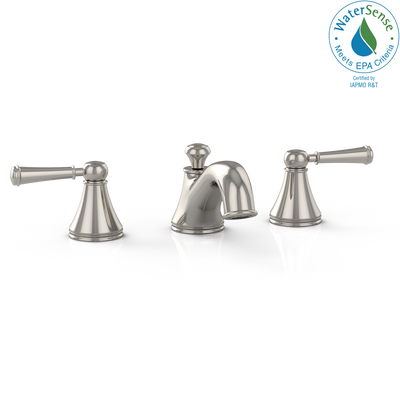 The TOTO Vivian Two Handle Widespread 1.2 GPM Bathroom Sink Faucet is elegantly designed in a classic style that will add beauty to any bathroom space. With its solid construction and finish, the Vivian widespread faucet will add beauty and elegance for years to come. The faucet is adjustable for six to twelve inch spread installations, allowing flexibility and versatility within your bathroom space. The double levers allow for complete control over water volume and temperature. The aerated 1.2 GPM flow rate enables you to conserve water, yet does not diminish the performance of the faucet. The faucet is WaterSense certified and ADA compliant. Included items: Spout, handles, hot and cold water valves, valve-to-spout hoses, pop-up drain and rod. Items purchased separately: water supply hoses.