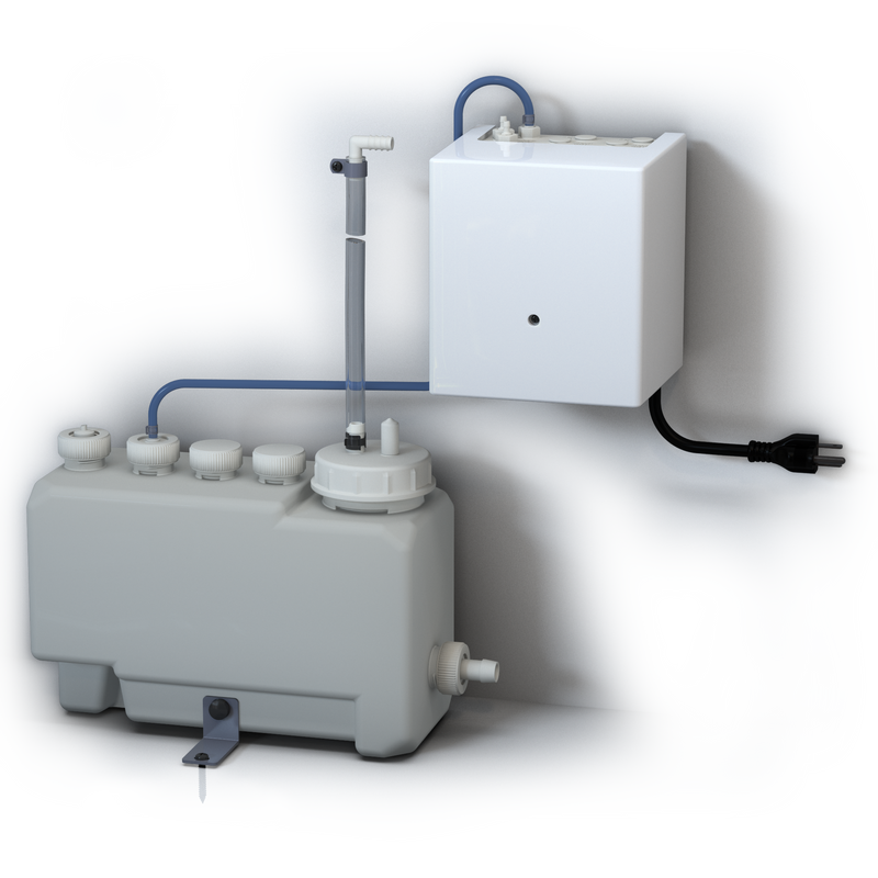 - Includes controller base unit, 3 liter (.08 gallon) reservoir tank, 20 liter (5.3 gallon) sub-tank, mounting hardware and supply lines