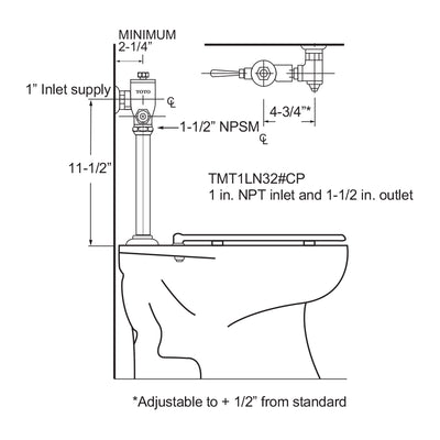 TMT1NNC - Toilet Flushometer Valve Only, 1.6 GPF, Polished Chrome