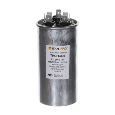 TITAN PRO TRCFD305 PROFESSIONAL GRADE DUAL RATED MOTOR RUN CAPACITOR 30+5 MFD 440/370 VOLT ROUND