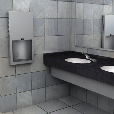 - The dryer will turn on when hands are held under air-outlet and in the designated drying alcove. When hands are removed from path of sensor, the dryer will stop.