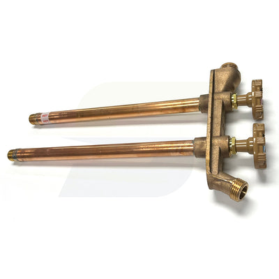 The Freezeless Model 22 hot and cold faucet is designed and intended for year-round hot and cold irrigation and cleaning purposes regardless of outside temperature. Separate hot and cold inlet tubes allow for manually operated temperature control with cross contamination protection. This faucet contains patented pressure relief valves that prevents the faucet from bursting in freezing weather should a hose be accidentally left on. The Model 22 contains an integral backflow protection device and does not require an add-on vacuum breaker. This ASSE 1019 device in intended for irrigation use and outdoor watering and shall not be subjected to more than (12) hours of continuous water pressure.