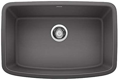 Valea Silgranit Single Bowl Undermount Kitchen Sink, 27" X 18"- Cinder
