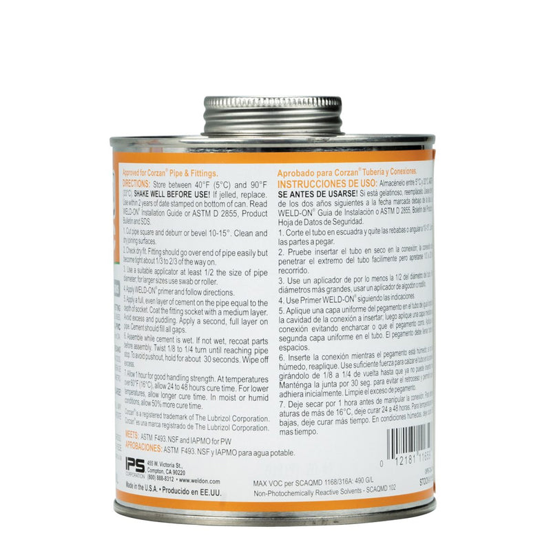 11659 - Weld-On 724 CPVC - Professional Industrial-Grade Heavy-Bodied Gray CPVC Cement - 1 Quart