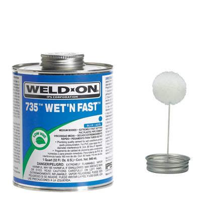 Weld-On 735 CPVC - PVC Wet N Fast Blue Medium Bodied Extremely Fast Setting - 1 Quart