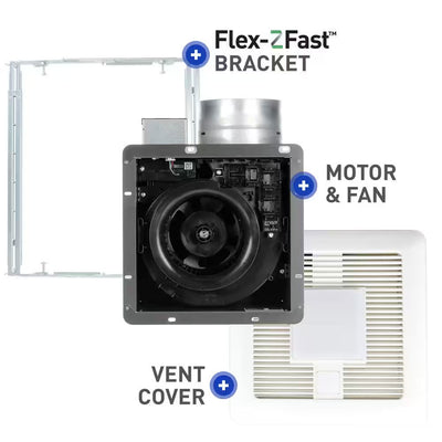 - Pick-A-Flow Airflow Selector; features a built-in speed selector (130-150 CFM model) combined with SmartFlow technology simplifies the selection process and ensures optimum performance to meet code and reduce callbacks