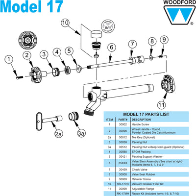 Model 17 wall faucet replacement parts: vacuum breaker float kit.