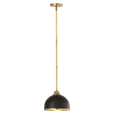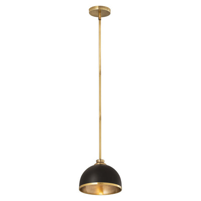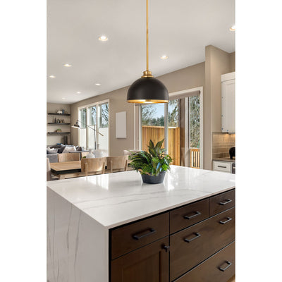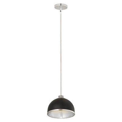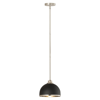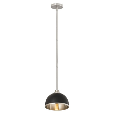 Easy elegance follows this domed metal one-light pendant with a crisp industrial influence and minimalist silhouette. A domed shade fashioned of matte black finish stainless steel is trimmed in brushed nickel finish metal with a brushed nickel finish down rod and canopy. This contemporary pendant is adaptable to a variety of d�cor schemes including farmhouse, modern industrial, and urban modern.