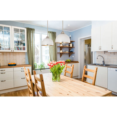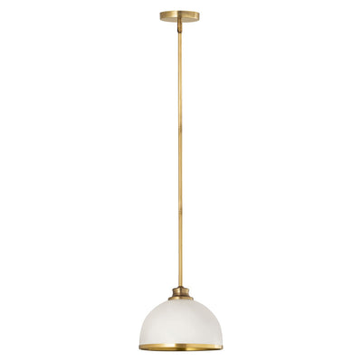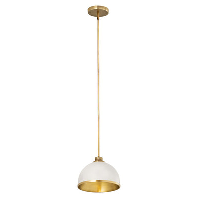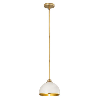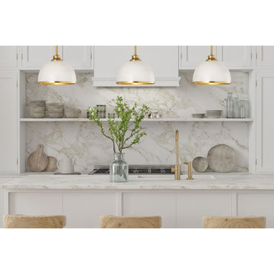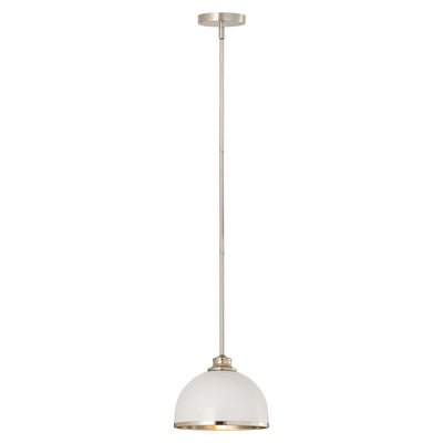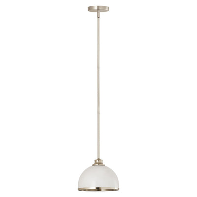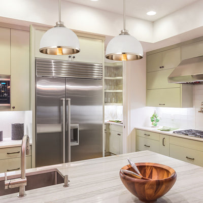 Make a statement in your home with these domed pendants designed with Industrial flair softened by a decorative accent band of metal trim on the bottom. These versatile pendants enhance a myriad of settings from modern farmhouse to urban loft. Available in three sizes in the following finish combinations: Matte Black + Chrome, Matte Black + Rubbed Brass, Matte Black + Brushed Nickel, Matte White + Rubbed Brass, and Matte White + Brushed Nickel.