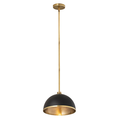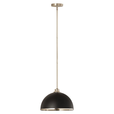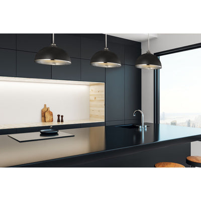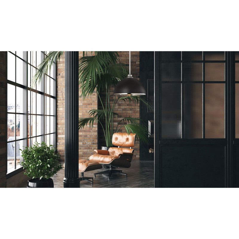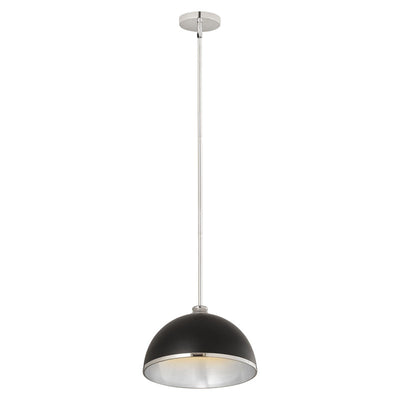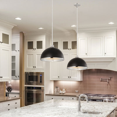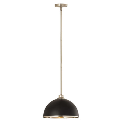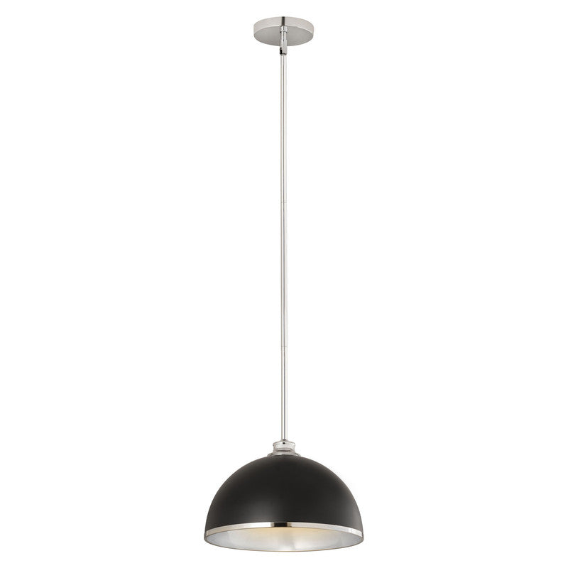 Chic, modern vibes add a stunning look to a custom kitchen, living space, or bedroom with this domed metal one-light pendant. A domed shade crafted of matte black finish stainless steel is trimmed in brushed nickel finish metal with a brushed nickel finish down rod and canopy. This updated pendant is suitable for a variety of d�cor schemes including farmhouse, modern industrial, and urban modern.
