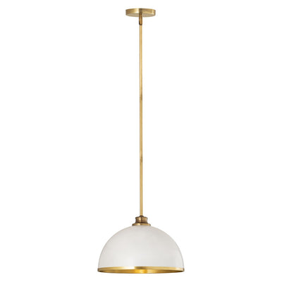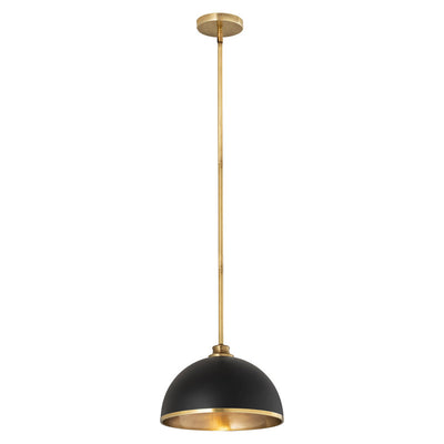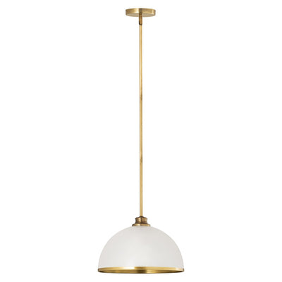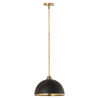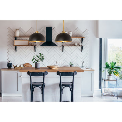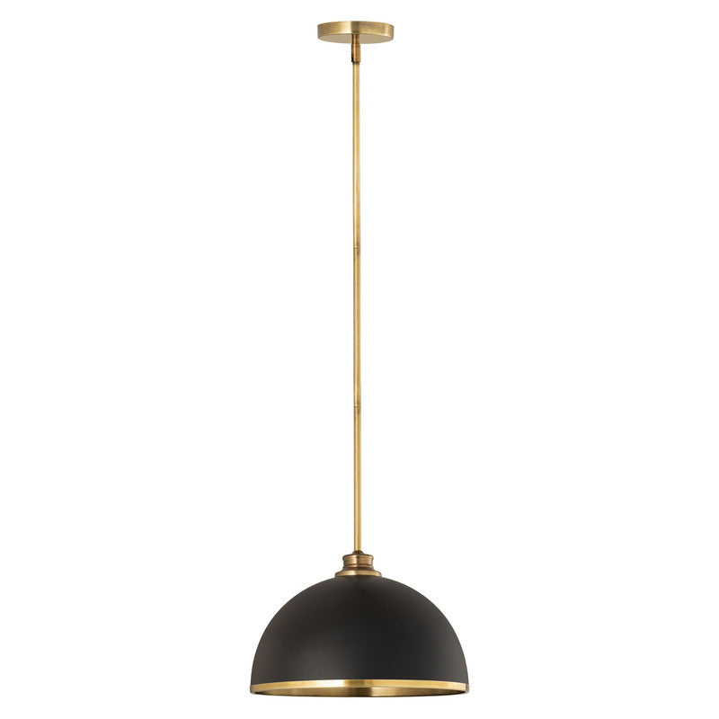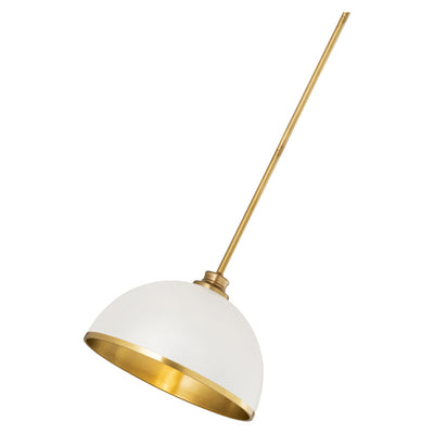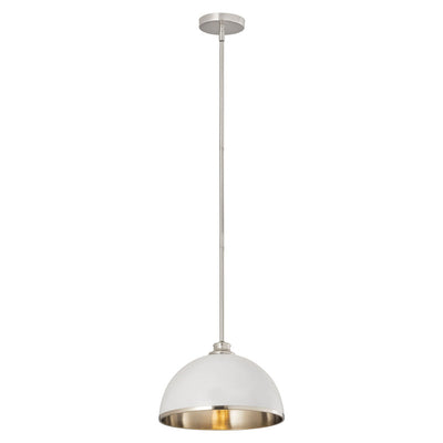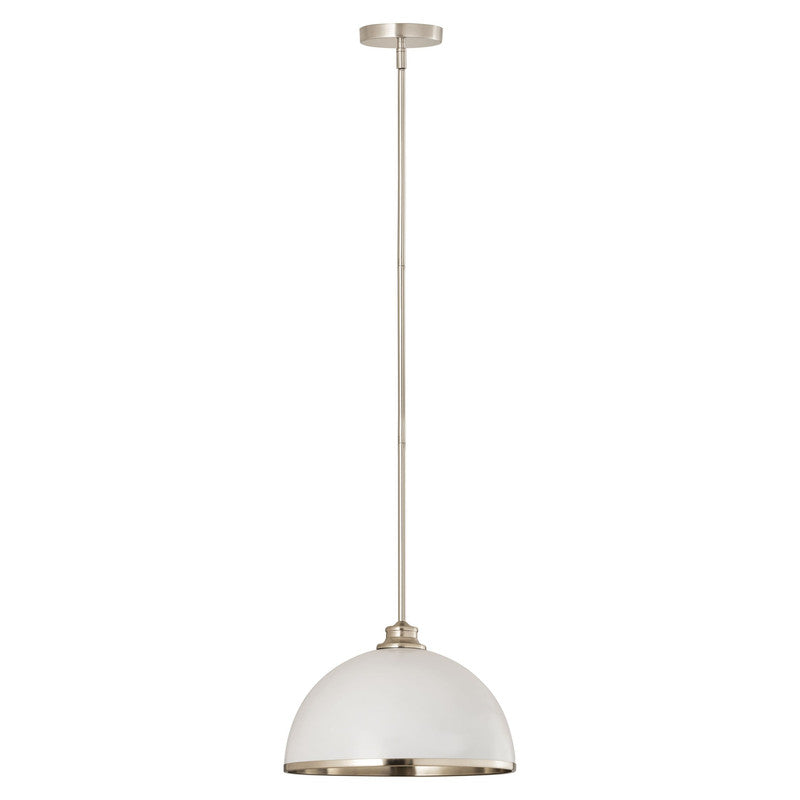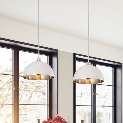 Make a statement in your home with these domed pendants designed with Industrial flair softened by a decorative accent band of metal trim on the bottom. These versatile pendants enhance a myriad of settings from modern farmhouse to urban loft. Available in three sizes in the following finish combinations: Matte Black + Chrome, Matte Black + Rubbed Brass, Matte Black + Brushed Nickel, Matte White + Rubbed Brass, and Matte White + Brushed Nickel.