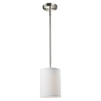 Add a touch of modern to any part of your house with this contemporary pendant. Finished in brushed nickel hardware, the circular, textured linen shade is in black.