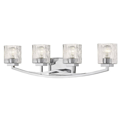 Frame a master or guest bath sink in style with this brushed nickel four-light vanity light. Attention to detail blends retro-inspired chiseled clear glass shades with an elegantly simple steel frame, resulting in a fun and functional fixture.
