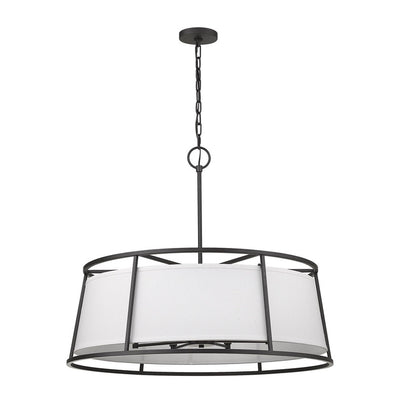 The Lenyx Pendant creates a statement in spaces both big and small. Elegant lines surrounding a white linen shade make Lenyx the perfect choice in any room. Offered in two sizes, and two finishes, brushed nickel with white linen, or iron ore with white linen.