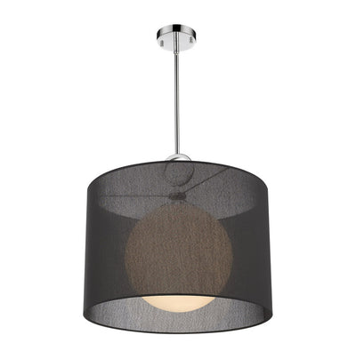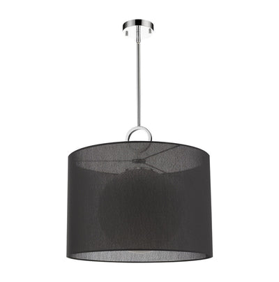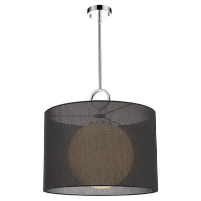 A bold, black fabric shade lends a touch of modern flair to this eye-catching, single-light pendant. From bedrooms to dining rooms to living rooms and more, this gorgeous, chrome fixture will elevate your living space to new heights of style.