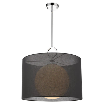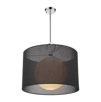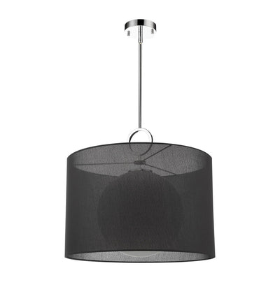 With a sleek, chrome frame and a modern aesthetic, this single-light pendant will elevate your decor to new heights of style. A bold, black fabric shade lends eye-catching allure to this exquisite piece.