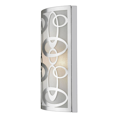 Delightfully artistic and flush with delicate glamour, this brushed nickel two-light wall sconce offers spot lighting with an elegant twist. Swirling elliptical shapes on its steel frame provide a softened view of a romantic white organza shade, delivering a classic light ambiance.
