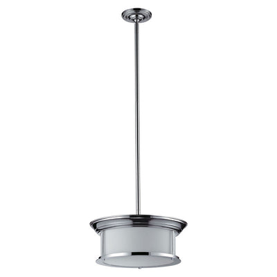 Modern chrome and matte opal shades give this three light pendant a clean and crisp look.