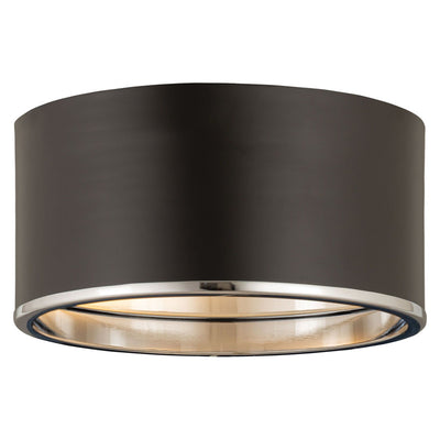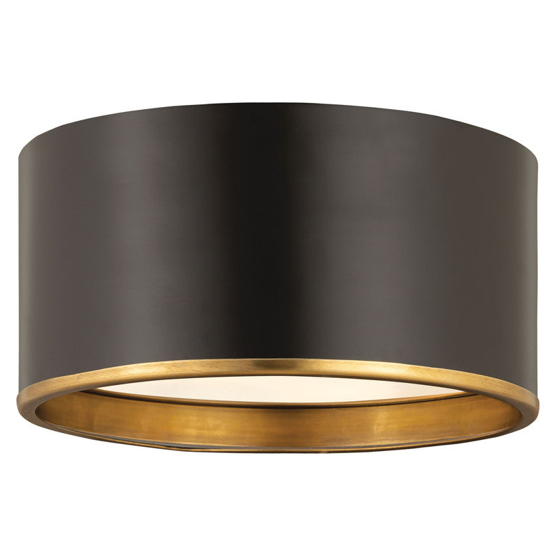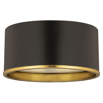 Bold and modern defines this flush mount, which features a two toned metal shade and stepped diffuser. Its bold but understated style makes this a versatile modern ceiling light fixture for any room in your home.