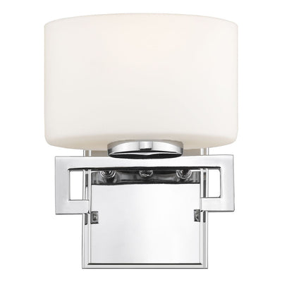 Turn functional lighting into a pivotal d�cor element, bringing a sleek geometric silhouette in beautiful materials and finishes. This brushed nickel finish steel one-light vanity showcases a heady matte opal shade, and offers long-life energy savings with integrated LED technology.