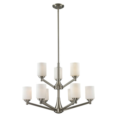 Clean lines and contemporary elegance describes the Montego family. Brushed nickel fixture and matte opal glass are paired to give a perfect finish in this 9 light chandelier.