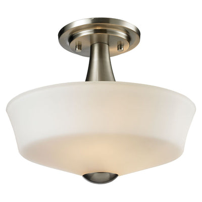 Clean lines and contemporary elegance describes the Montego family. Brushed nickel fixture and matte opal glass are paired to give a perfect finish in this 2 light semi flush mount.