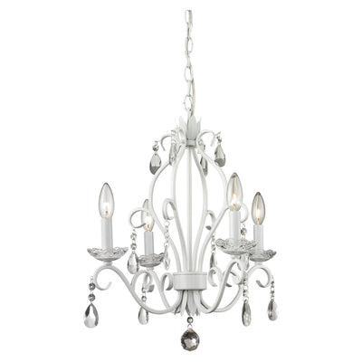 Beautifully cut clear crystals are paired with a matte white finish in this 4 light mini chandelier. The unique chandelier will provide a touch of sparkle and elegance.