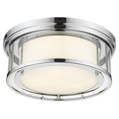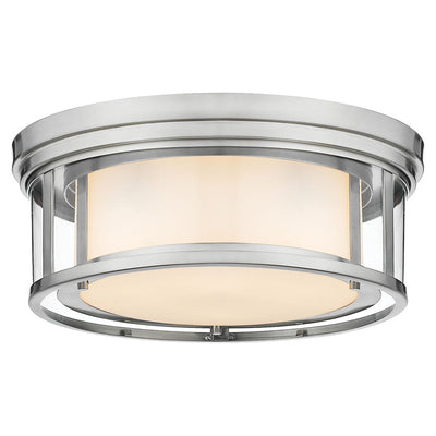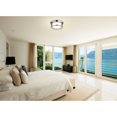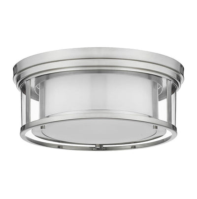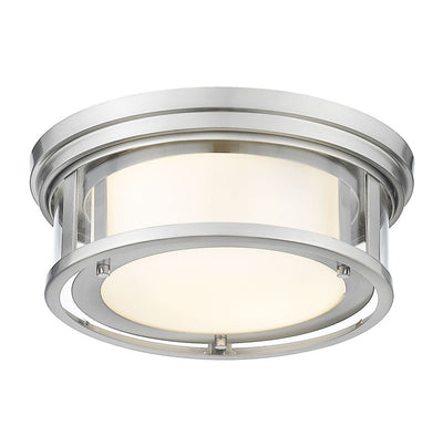 Give your dining room or bedroom a chic, sophisticated update. This beautiful, brushed nickel flush mount ceiling fixture features three glowing bulbs beneath a delicate, glass shade that's white on the inside and clear on the outside. An exquisite lighting option to highlight your refined sense of style.