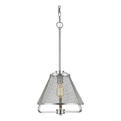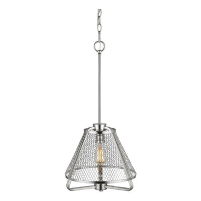 The Iuka collection of fixtures feature a round inverted mesh basket resting on a trapezoid shaped frame to create its signature look. Finishes include Bronze or Brushed Nickel.