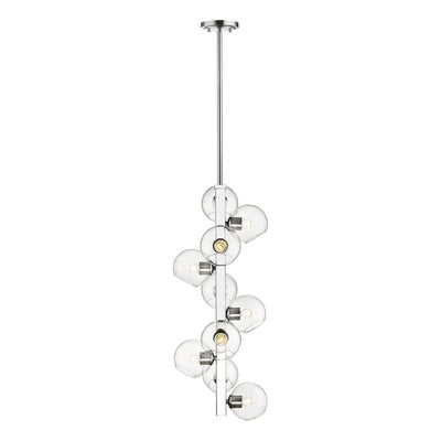 Delicate open glass orbs descend down a bright chrome steel rod, bringing an artistic modern effect to this 10-light pendant. Enjoy the sleek minimalist look with upscale attitude and a wonderful versatility.