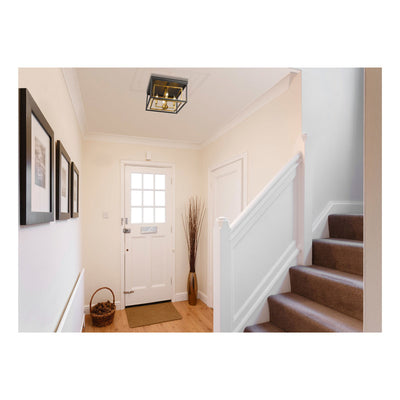 This contemporary four-light flush mount design takes advantage of open layered cubes for a fresh geometric twist. Modern chrome and matte black finishes bring a visually striking sense of stark beauty to any metropolitan city inspired space.