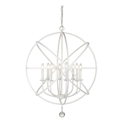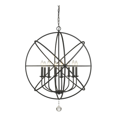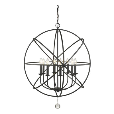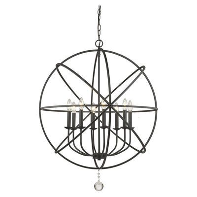 A dramatic and dynamic ambiance makes this matte black steel eight-light open-orb chandelier a fabulous choice for transitional living spaces. Try your hand at customizing a blend of finishes for its frame interior, finials, and candelabra bulb bases, and appreciate the delicate, ornate look of floating crystal shapes that deliver an artistic, glamorous touch.