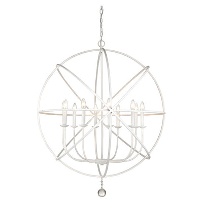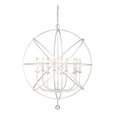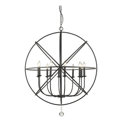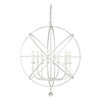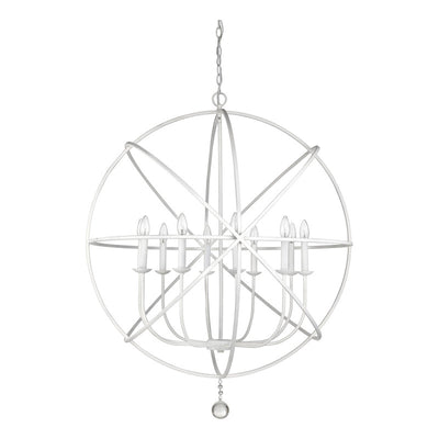 The charming traditional ambiance of candelabra-style bulb bases throws a curve into a space-inspired contemporary motif, making this open-orb shaped ten-light chandelier a fabulous choice. Enjoy flexible customizing options by choosing finishes for its steel frame interior, finials, and bulb bases, and note the delicate glam effect of dangling crystal elements.