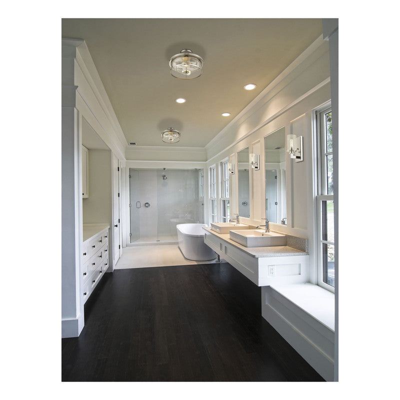 The contemporary Savannah family adds sophistication to home d�cor. The beautifully appointed brushed nickel fixtures are perfectly paired with clear glass shades.